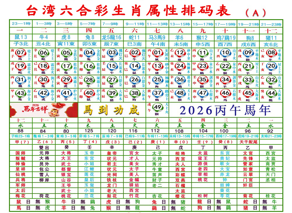 2026生肖: 01马 02蛇 03龙 04兔 05虎 06牛 07鼠 08猪 09狗 10鸡 11猴 12羊